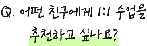 1:1이라 집중을 더 잘하더라고요. 편한 환경에서 공부하니, 학습 능률도 더 좋아지는 것을 직접 봤습니다. 온라인 수업이 처음에는 불안했는데 생각이 많이 변했어요. 학습 효율 측면에서 많은 도움이 됩니다.
